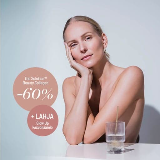 The Solution™ Beauty Collagenin on tieteellisesti todistettu ennalta ehkäisevän ja vähentävän ryppyjä ja hienoja juonteita samalla kun se parantaa ihon tekstuuria ja kimmoisuutta. Saat nyt ensimmäisen pakkauksen edullisemmin ja lahjaksi The Rescue Glow Up -kasvonaamion.